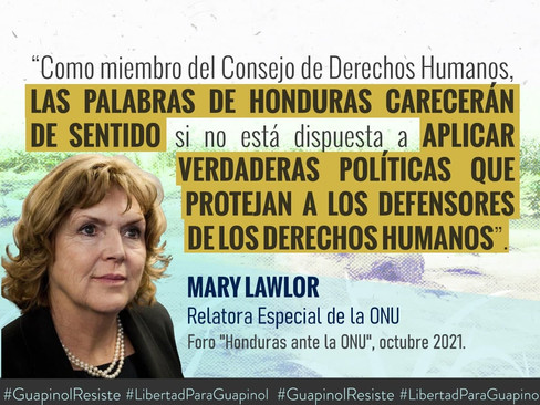 En el foro virtual celebrado en el marco de la 76ª Asamblea General de la ONU, Mary Lawlor, Relatora Especial de la ONU para la Situación de las Personas Defensoras de los Derechos Humanos, advierta que la falta de voluntad política para proteger a las personas defensoras ha provocado un número “escandalosamente alto” de detenciones y asesinatos en Honduras.